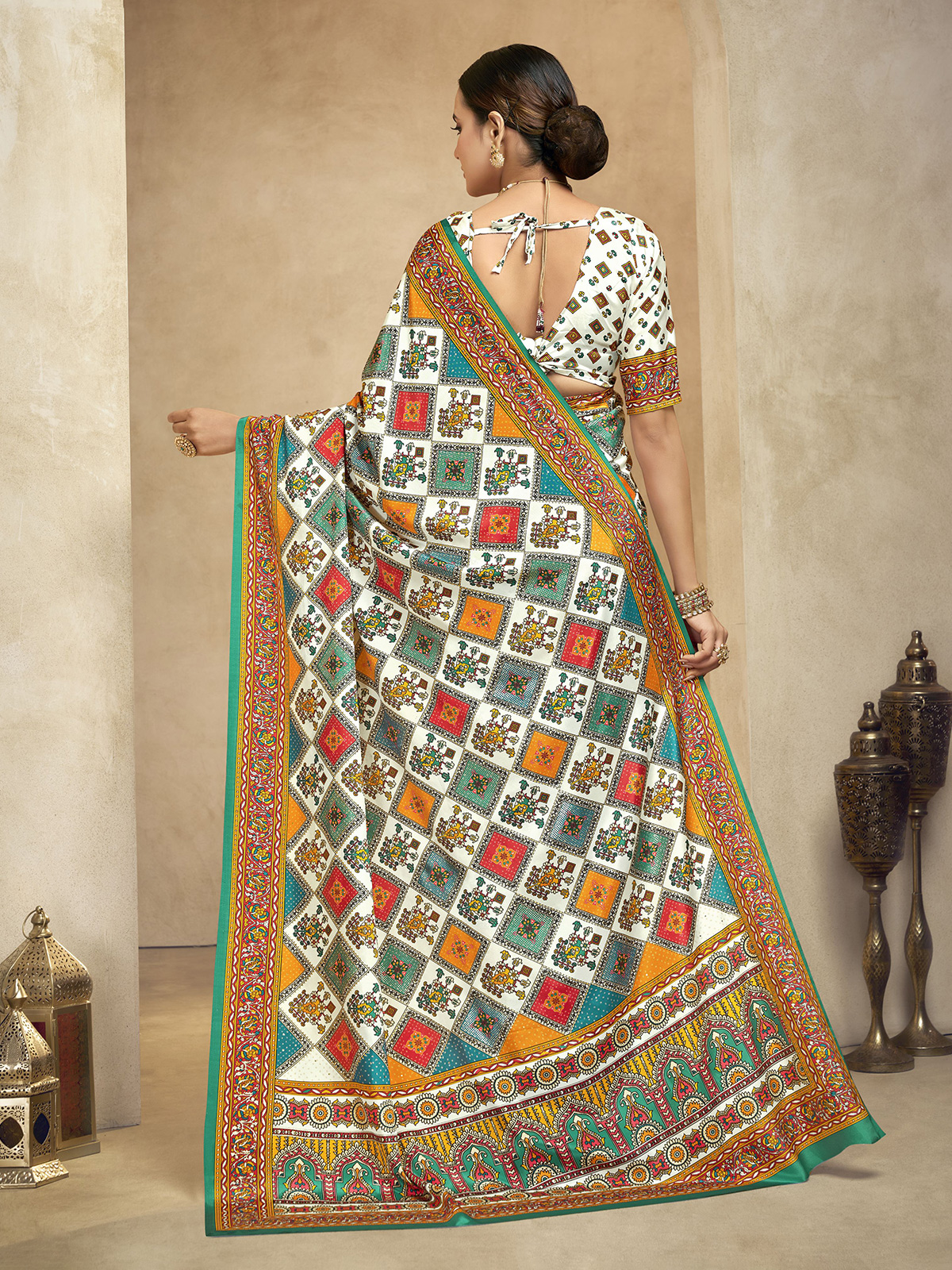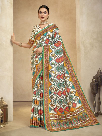 White Crepe Silk Saree With Digital Print