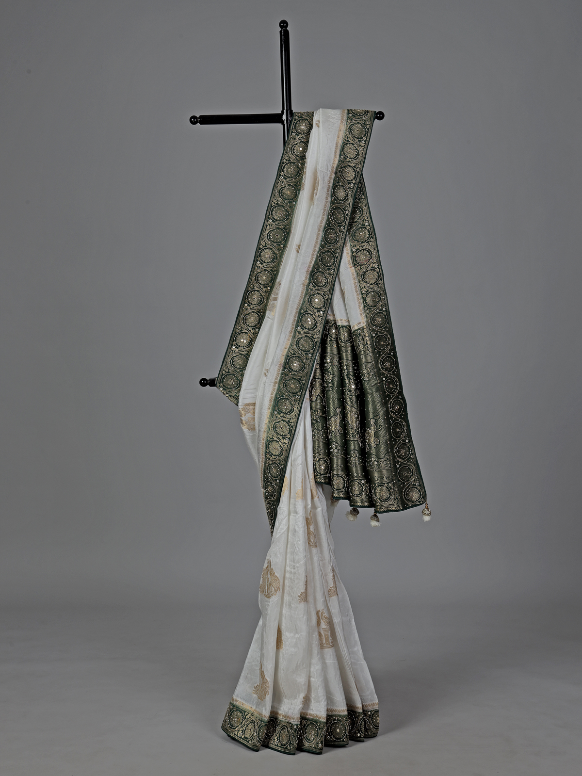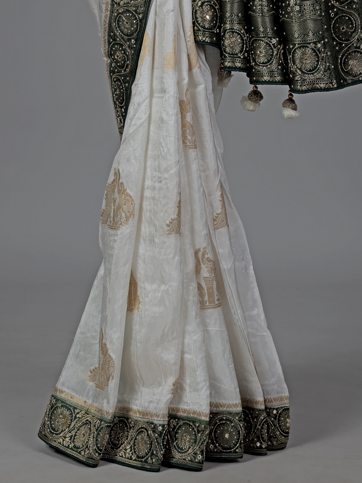White Dola Silk Heavy Embellished Festive Wear Saree