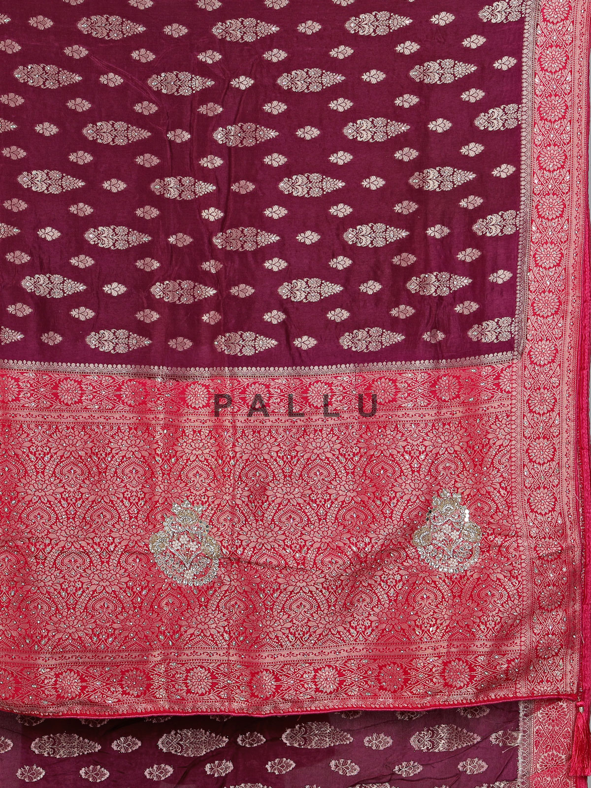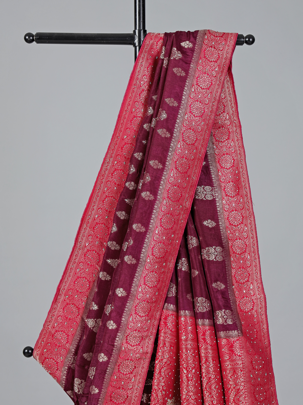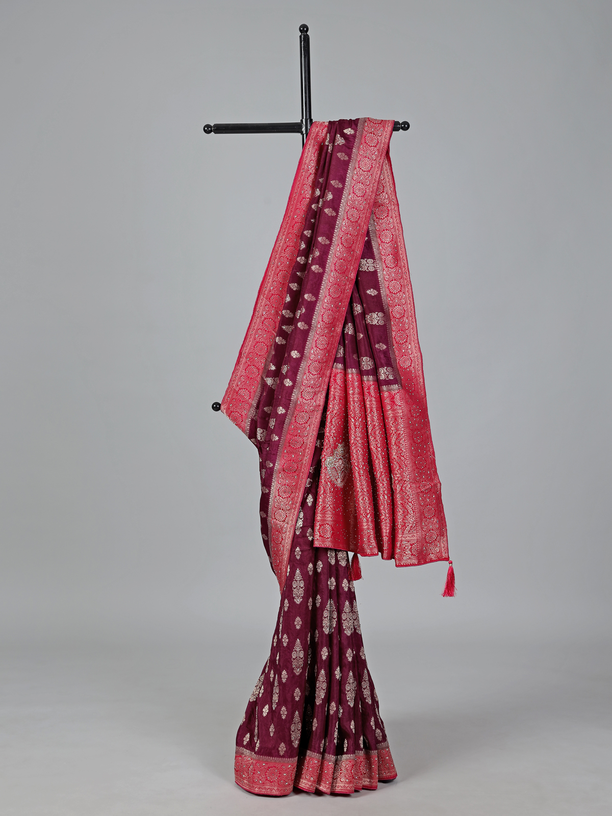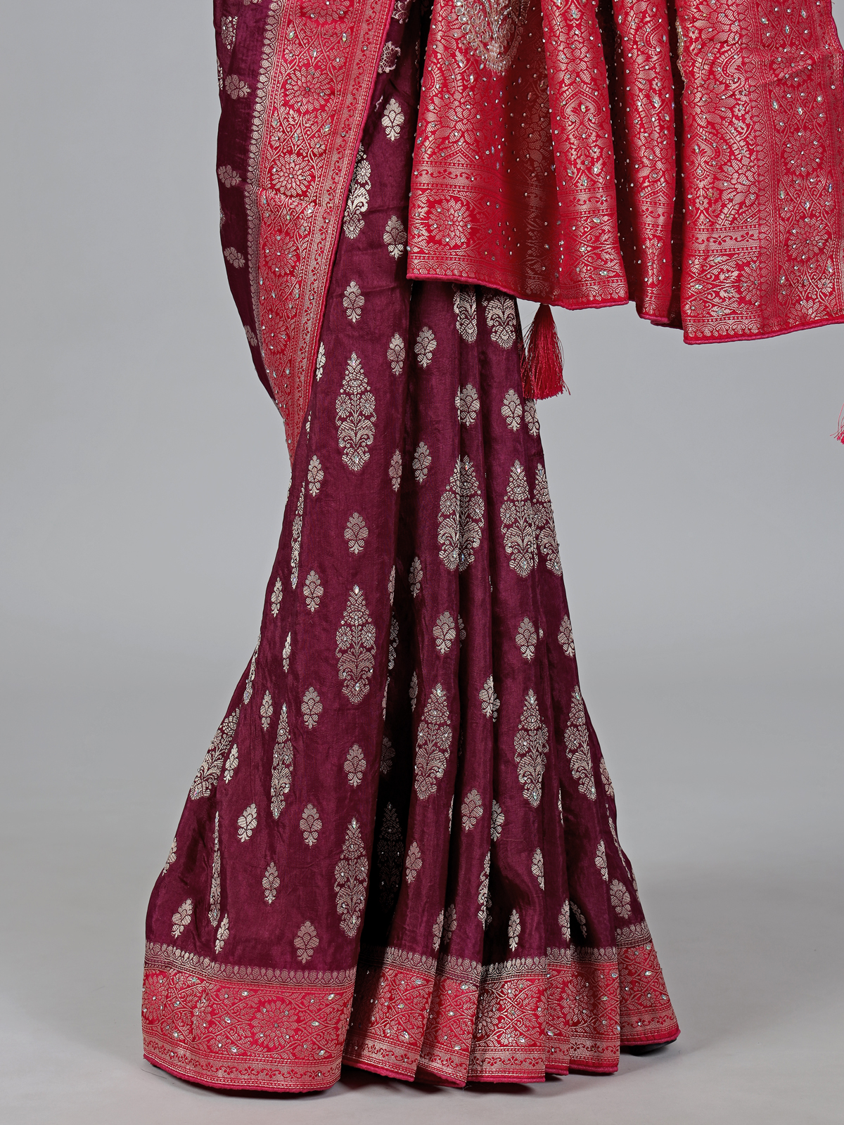 Wine Dola Silk Zari Stone Festive Saree