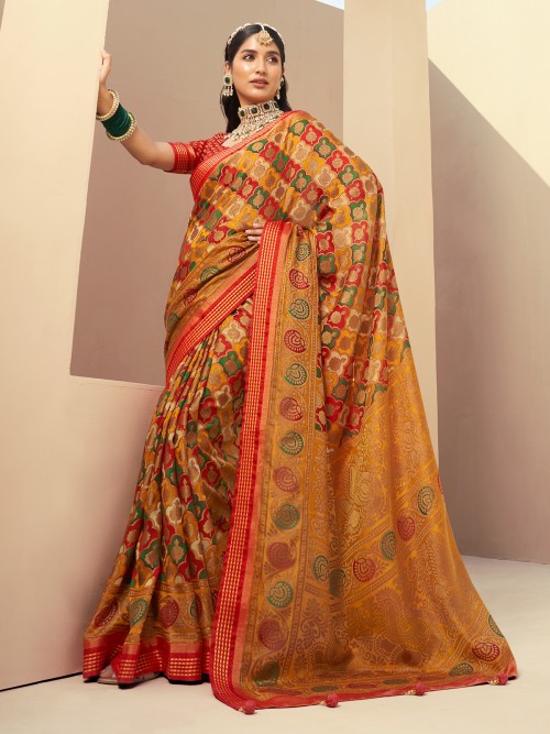 Yellow georgette saree shows gentle print marks on a breezy, soft fabric. Its smooth fall and light touch make it a fine pick for cheerful events or small celebrations. Comes with an unstitched blouse piece for easy shaping and home ready stitching.