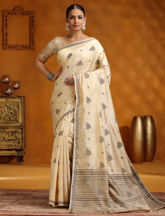 This aqua silk saree tells a story of elegance and heritage with its zari detailing. Includes unstitched blouse.