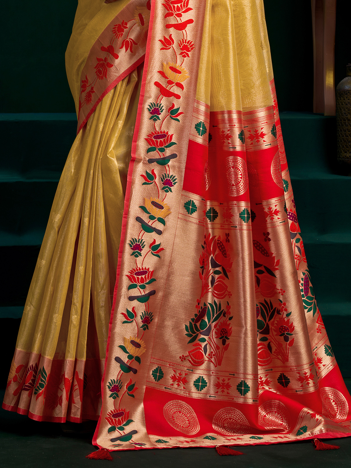 Yellow Tissue Paithani Silk Saree